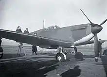 Supermarine Spitfire variants powered by early model Rolls-Royce Merlin engines mostly utilised single-speed, single-stage superchargers. The British Supermarine Spitfire was the only Allied fighter aircraft of the Second World War to fight in front line service from the beginnings of the conflict, in September 1939, through to the end in August 1945. Post-war, the Spitfire's service career continued into the 1950s.[1] The basic airframe proved to be extremely adaptable, capable of taking far more powerful engines and far greater loads than its original role as a short-range interceptor had called for. This would lead to 19 marks of Spitfire and 52 sub-variants being produced throughout the Second World War, and beyond.[2] The many changes were made in order to fulfil Royal Air Force requirements and to successfully engage in combat with ever-improving enemy aircraft.[3] With the death of the original designer, Reginald J. Mitchell, in June 1937, all variants of the Spitfire were designed by his successor, Joseph Smith, and a team of engineers and draftsmen.[4]