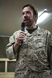 The feud between The Undertaker and Yokozuna began at Survivor Series 1993. During an elimination match, Yokozuna was unable to injure The Undertaker, despite slamming The Undertaker's head into the ring steps and performing the Banzai drop on him.[21] A match was booked for Royal Rumble 1994, in which The Undertaker would challenge WWF World Heavyweight Champion Yokozuna for the title in a Casket match. During the match, which featured a no-disqualification clause, Mr. Fuji, Yokozuna's manager, hired nine other wrestlers to interfere on Yokozuna's behalf. Yokozuna won the match after opening The Undertaker's urn, which, according to the storyline, contained the secret to The Undertaker's powers. After the match, The Undertaker appeared on the video screen and vowed to return to the World Wrestling Federation one day.[22] He was not seen for several months, although, in reality, he was taking time off wrestling to allow injuries to heal.[22] The Undertaker returned at SummerSlam 1994, defeating an Undertaker look-alike.[23] A rematch against Yokozuna was scheduled for Survivor Series. This was also to be a Casket match, but Chuck Norris was brought in as a special outside referee to prevent interference.[24]