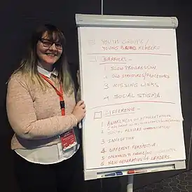 After attending an event in 2017 organised by the European Multiple Sclerosis Platform (EMSP) and Shift.ms for Young People affected by Multiple Sclerosis she started being involved in the patient community.[2] In 2017, she joined Shift.ms' volunteer team called 'The Energy'.[3] In 2018, she became a member of the board of the non-profit association Multiple Sclérose Lëtzebuerg[4] and a member of the EMSP's Young People's network.[2] As the youngest board member of Multiple Sclérose Lëtzebuerg, youth engagement and reducing isolation are her main focus areas.[5]
