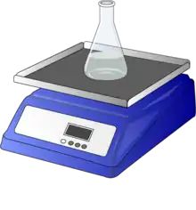 Shaker flasks are also used for suspension cultures, and appear similar to typical Erlenmeyer flasks but have a semi-permeable lid to allow for gas exchange.[17] During suspension cell culturing, shaker flasks are loaded with cells and the appropriate media before they are placed on an orbital shaker. To optimize cell culture proliferation, the revolutions per minute of the orbital shaker must be adjusted within an acceptable range depending on the cells and media used. The media must be allowed to stir, but cannot disturb the cells too much causing them excessive stress. Shaker flasks are often used for fermentation cultures with microorganisms such as yeast.[18]