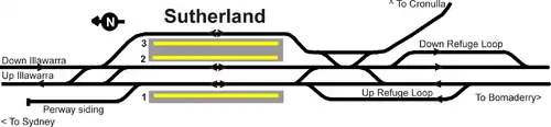 Sutherland railway station is located on the Illawarra line, serving the Sydney suburb of Sutherland. It is served by Sydney Trains T4 line services and NSW TrainLink South Coast line services.