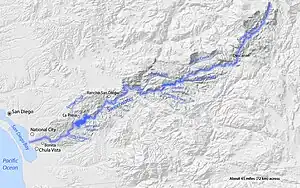 - ↑ "Coastal Basins of San Diego County, California, and Northern Baja California, Mexico" (PDF) (Map). California Water Science Center. Cartography by USGS. U.S. Geological Survey. Retrieved January 21, 2011.