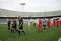 Syria played their first official game against Lebanon on 19 April 1942; Qasioun Eagles won 2–1.[9] Syria's first official qualifying match was played in Ankara against Turkey, which ended in a Syrian defeat 7:0 on 20 November 1949.[10] Thanks to that, the Syrian team participated in the 1950 World Cup European qualifiers as one of the first teams in the region to do so.[11] One of the biggest defeats was played in Athens against the Greece, on 25 November 1949, 5 days after its first official match which ended in a score of 8:0 for the Greeks.[12]