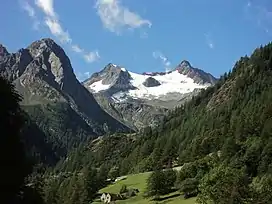 ![]() The Tällihorn (right peak) from the Laggintal (north side) | |