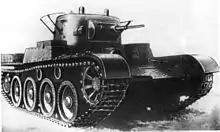 The T-46 was a Soviet fast light tank developed in 1935, as an improvement to the earlier T-26. The design was later discarded by the government, after the prototypes were built and tested. The project ended up being too expensive and a poor design. The thin armor, bulky hull and small main gun put the crew in great danger, which made the tank unsuitable for use in combat.