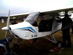 The T-10M has some changes to undercarriage and fin, plus a change of engine. The main gear sprung element has been moved from the half-axle to the rearward V strut and the early castoring nosewheel replaced with a steerable system with a simpler single leg. The fin of the T-10M is more angular and narrower than that of the T-10 and incorporates a triangular fillet. The T-10s are powered by 60 kW (80 hp) Jabiru 2200s, the T-10Ms by 74 kW (100 hp) Rotax 912S flat four engines.[3]