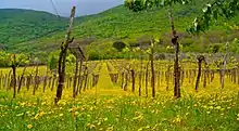 Italian wine, both red, white, rose and sparkling, under the Taburno DOC appellation comes from vineyards in the foothills around the mountains in Campania. Grapes destined for DOC production must be harvested up to a maximum yield of 13 tonnes/hectare, with the finished wines fermented to a minimum alcohol level of 11%.[18] The Taburno DOC is currently a subzone of the Sannio DOC label.[19]