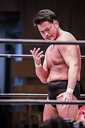 Takanori Ito (伊藤 貴則, Itō Takanori, born September 20, 1993) is a Japanese professional wrestler who currently wrestles for Gleat. He is best known for working for Wrestle-1, where he is a two-time Wrestle-1 Result Champion and a one-time Wrestle-1 Tag Team Champion, alongside Masayuki Kono. He also won the Striker Full Contact Karate Heavyweight Championship.