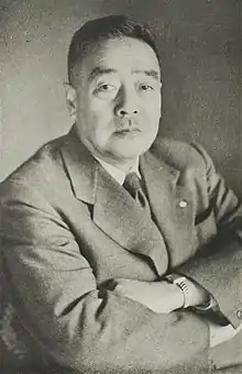 Taketora Ogata (緒方 竹虎, Ogata Taketora, January 30, 1888 – January 28, 1956) was a Japanese journalist, Vice President of the Asahi Shimbun newspaper and later a politician. During the war, he joined the Imperial Rule Assistance Association. After the end of the war, he was purged from public service. Later, he became the Chief Secretary of the 4th Yoshida Cabinet, Vice President and then President of the Liberal Party of Japan of Japan, but he died before becoming a prime minister.