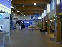 The low-cost airline terminal 2 was renovated in 2014–2015.[6] However, in April 2015, Ryanair announced that it would cancel all the routes from Tampere for the winter season 2015–16 due to a plane shortage. Then, only routes to Bremen and Budapest resumed in spring 2016.[7] in late 2023, Ryanair terminated the route to London-Stansted, ending 20 years of service.