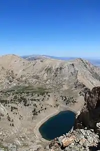 A tarn (or corrie loch) is a mountain lake, pond or pool, formed in a cirque excavated by a glacier. A moraine may form a natural dam below a tarn.[1]
