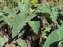 - ↑ Lebot, V.; Tuia, V.; Ivancic, A.; Jackson, G. V. H.; Saborio, F.; Reyes, G.; Rodriguez, S.; Robin, G.; Traoré, R.; Aboagye, L.; Onyeka, J.; van Rensburg, W.; Andrianavalona, V.; Mukherjee, A.; Prana, M. S. (2017-09-05). "Adapting clonally propagated crops to climatic changes: a global approach for taro (Colocasia esculenta (L.) Schott)". Genetic Resources and Crop Evolution. 65 (2): 591–606. doi:10.1007/s10722-017-0557-6. hdl:10400.13/3170. ISSN 0925-9864. S2CID 12700604.