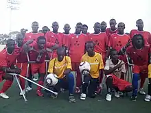 Team Zaryen is a Haitian Amputee soccer team in Port-au-Prince, Haiti. Zaryen is the Creole word for Tarantula. The players give two answers when asked why the tarantula was chosen to represent the soccer team. First because when a tarantula attacks, it pursues its enemy slowly and is deadly with just one bite. A tarantula is a spider known to carry on despite the loss of a leg and with the ability to regrow a lost limb.[1] Another reason for the team mascot is because the tarantula has so many legs, much like the appearance of the soccer players with their loftstrand (forearm) crutches.