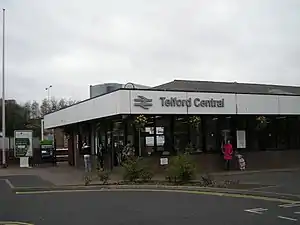 Telford Central railway station serves the town of Telford, Shropshire, England. It is located on the Wolverhampton to Shrewsbury Line 15+1⁄2 miles (24.9 km) north west of Wolverhampton and is operated by West Midlands Trains. It is situated close to the Telford Shopping Centre, the main commercial district of the town.