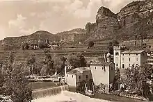When Second Republic was declared Mas was a widowed septuagenarian, politically tending to inactivity.[84] However, he resumed public role following the death of Don Jaime; in late 1931 he declared loyalty to the new Carlist claimant Don Alfonso Carlos[85] and re-entered Comunión Tradicionalista,[86] which following 12 years of dissidence marked his return to orthodox Carlism.[87] He did not assume any position in the party[88] and enjoyed rather the status of a Traditionalist patriarch;[89] his role was about occasionally appearing on public rallies, like in 1934,[90] or donating money to the cause, like in 1936.[91] Upon outbreak of the Civil War Mas fled to his property near Vilanova de Sau, but following few weeks he was tracked down by the anarchist-dominated Comitè Antifeixista of Vich. A hit-squad, led by Vicenç Coma Cruells,[92] appeared at the Molí de Sau estate. Mas confronted them at the doorstep of his house and was shot together with his son-in-law.[93]