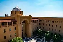 The architectural firm responsible for the campus plans are Kell Munoz and the Construction Manager at Risk is Bartlett Cocke.[26] The campus buildings are designed with buff-colored sand-faced brick and San Saba, TX-sourced sandstone, articulated arches and accents that reflect the Architecture of San Antonio and South Texas.[27] Elements of Old World and New World Spanish styles are also incorporated along with elements of Modern architecture such as glass, steel and reinforced concrete.[27] The campus facilities are designed to LEED Silver standards and Energy Star rated roof materials.[27]
