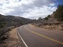 PR 3's 1.2-mile (1.9 km)[1] main road begins at SH 118. Immediately after the intersection, PR 3 divides into two one-way roadways separated by the park headquarters and reuniting just beyond.[3] The road then continues westward through Keesey Canyon one-half mile (0.8 km) passing a couple of small hiking trails to the intersection with PR 3A. Beyond PR 3A, several drives branch off as loops accessing campsites, staff residences, and other park facilities. The road makes a sharp curve and a steep upward grade before ending at Indian Lodge 1.2-mile (1.9 km) west of the intersection with PR 3A.[3][4]