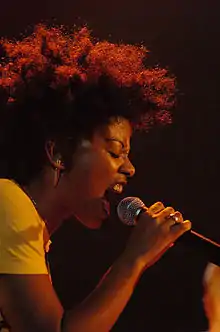 In 2012, she performed at the closing ceremony of the London Paralympics together with Carlinhos Brown and Os Paralamas do Sucesso.[2][5] As a composer, she has collaborated with a variety of artists including Gal Costa, Mariana Aydar, Gaby Amarantos, Ed Motta and Filipe Catto.[6] She also collaborated with Kamasi Washington on three albums.[2] Her 2019 album Sorte!, in collaboration with composer John Finbury, was nominated for a Grammy Award in the Best Latin Jazz Album category.[2][3]
