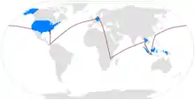 This season traveled a little over 35,000 miles (56,000 km) to 20 cities across four continents.[4] This season included first-time visits to Denmark, Indonesia, Malawi, and Belgium.[5] Filming started on June 18, 2011, with teams seen leaving Los Angeles International Airport and heading to Taiwan.[1] As with the previous season, racers had a task they had to perform before receiving tickets to their first destination.[4] American film crews were also spotted in Hillerød, Denmark on July 4.[6]