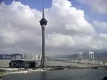 In this leg's Roadblock, one team member had to perform the world's highest bungee jump from the top of the Macau Tower and fall 233 metres (764 ft) to the ground to receive their next clue. The first team to complete the task would receive a helicopter ride from Macau to Hong Kong instead of the TurboJET ferry ride.