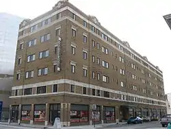 The Ambassador is a historic apartment building located at Indianapolis, Indiana. It was built in 1924, and is a large six-story, tan cinder brick building. The first floor has Chicago school style commercial storefronts. It has a recessed entrance with detailed metal canopy and features Sullivanesque terra cotta ornamental detailing.[2]: Part 2, p. 48–49