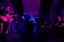 Guests and collaborators are varied in musical styles and backgrounds. in 2018, a theatre-cabaret event with an important improvisational ingredient played in all the main centres in New Zealand with a flexible lineup. Key members were Stuart Porter (saxophone, improvisation guide), William Henry Meung (synthesiser), Alex Wolken (piano), Brendon Ryniker (drums, South Island), Steve Cournane (drums, Auckland), Susan Ellis (trumpet-cello, South Island), Pania Simmonds (bass, Dunedin), Greig Bainbridge (electric bass), with guests appearing "à l'improviste" in many centres.[10] Latest co-musicians for a short tour of the state of Tennessee with an appearance at Cropped Out Festival in Kentucky[11] were Nashville residents Matthew Swanson (bass) and Chris Davis (percussion).[12] Other US collaborators have been members of Simon Joyner's Ghosts including Joyner himself, with Dave Nance and Chris Deden. Steve Cournane (percussion and drums) and Greig Bainbridge (bass), working with Stuart Porter of Primitive Art Group (saxophone) were among musicians essential to a Builders tour of New Zealand in 2016.[13] After a ten-year break from the band, pianist Andrew McCully rejoined Builders in Auckland in 2019 to revive Songs for Michael Joseph Savage. In Wellington (NZ) Direen, guitarist/curator/founder of Marineville Mark Williams and poet/composer/percussionist Jo Contag formed a splinter group combining spoken word/poetry by Bill Direen, guitar loops/enrichment and drum patterns, known as Ferocious. Stuart Page (1983–85, 2010–present) can also be found in NZ lineups. Steve Cournane and Greig Bainbridge play regularly in NZ, expanding the repertoire to include rarer material.