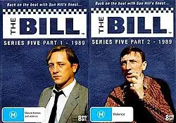 The fifth series of The Bill, a British television drama, consisted of 104 episodes, broadcast between 3 January – 28 December 1989. The series was first released on DVD as part of the Collection 3 and Collection 4 DVD boxsets in Australia, made available on 8 August – 7 November 2007, respectively. The first four episodes of the series were later issued on DVD in the United Kingdom, under the title Volume 4, on 15 March 2010. The next thirteen episodes of series 5 were released on DVD in the UK, under the title Volume 5, on 11 July 2011, the next 48 episodes of Series five were released on DVD in the UK under the title Volume 6, on 15 October 2012 and the remaining episodes were released on DVD in the UK under the title Volume 7, on 2 September 2013. The series was later reissued as two half-series boxsets in Australia, released on 7 March 2012. The above DVD artwork is taken from the most recent Australian release. It features images of DC Jim Carver and Sgt. Bob Cryer. The British volume artwork features a collage image featuring a variety of characters from across the season. The original Collection boxsets contained sole images of PC Pete Ramsey and PC June Ackland respectively.