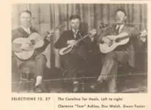 The Carolina Tar Heels was an American old time string band. It originally consisted of Dock Walsh (July 23, 1901 – May 28, 1967) on banjo and Gwen Foster on harmonica.[1] Later Clarence Ashley (September 29, 1895 – June 2, 1967) joined on guitar and Garley Foster (January 10, 1905 – October 5, 1968) would replace Gwen on harmonica. Despite sharing a surname Gwen and Garley were not related.[2]