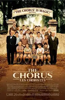 The Chorus (French: Les Choristes, literally "The Choristers" or "The Choirboys") is a 2004 French musical drama film directed by Christophe Barratier. Co-written by Barratier and Philippe Lopes-Curval, it is an adaptation of the 1945 film A Cage of Nightingales (La Cage aux rossignols). The story is inspired by the origin of the boys' choir the Little Singers of Paris.