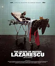 The Death of Mr. Lazarescu (Romanian: Moartea domnului Lăzărescu) is a 2005 Romanian dark comedy film by director Cristi Puiu. In the film an old man (Ioan Fiscuteanu) is carried by an ambulance from hospital to hospital all night long, as doctors keep refusing to treat him and send him away.