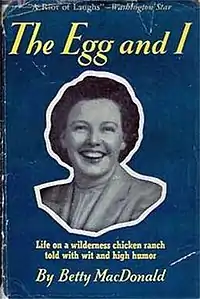 The Egg and I, first published in 1945, is a humorous memoir by American author Betty MacDonald about her adventures and travels as a young wife on a chicken farm on the Olympic Peninsula in the US state of Washington. The book is based on the author's experiences as a newlywed trying to acclimate to and operate a small chicken farm near Chimacum, Washington, with her first husband, Robert Heskett, from 1927 to 1931. On visits with her family in Seattle, she told stories of their tribulations, which greatly amused them. In the 1940s, MacDonald's older sister, Mary, strongly encouraged her to write a book about these experiences. The Egg and I was MacDonald's first attempt at writing a book.