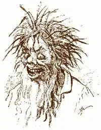 The Green Fisherman is an ogre who dwells in a sea cave on the coast of Busy Bee Island (Isola delle Api Industriose) where he lives on a diet seemingly composed entirely of sea life. He is described as "...so ugly, he looked like a sea monster. Instead of hair, he had on his head a dense clump of green grass; green was the skin on his body, green were his eyes, green was his long beard which drooped downwards. He looked like a great lizard erected on its hind legs."