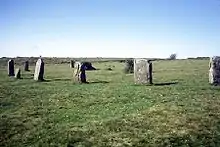 The Hurlers (Cornish: An Hurlysi[1]) is a group of three stone circles in the civil parish of St Cleer, Cornwall, England, UK. The site is half-a-mile (0.8 km) west of the village of Minions on the eastern flank of Bodmin Moor, and approximately four miles (6 km) north of Liskeard.[2]