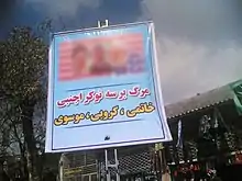 The Leaders Of The Sedition is a phrase used in the government literature of the Islamic Republic of Iran after the presidential election in 2009 to refer to the reformist leaders who oppose the government, especially Mir-Hossein Mousavi, Mehdi Karroubi, and sometimes Mohammad Khatami.[1][2] Also, the events and unrest after the 2009 Iranian presidential election have been referred to as "sedition" or "sedition current" in Iran.[3][4]