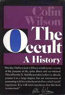The Occult: A History is a 1971 nonfiction occult book by English writer, Colin Wilson. Topics covered include Aleister Crowley, George Gurdjieff, Helena Blavatsky, Kabbalah, primitive magic, Franz Mesmer, Grigori Rasputin, Daniel Dunglas Home, Paracelsus, P. D. Ouspensky, William Blake, Giacomo Casanova, Heinrich Cornelius Agrippa, and various others.[1]