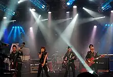 They branded their style of music as "kimchibilly" to represent their Korean take on the style, referring to Korea's representative food kimchi, and for years held monthly "Kimchibilly Nights."[1][2] The term was coined by a foreign fan of the band.[3][4]