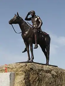 The Scout is a famous statue by Cyrus E. Dallin in Kansas City, Missouri. It is more than 10 feet (3.0 m) tall, and depicts a Sioux Indian on horseback surveying the landscape. The Scout was conceived by Dallin in 1910, and exhibited at the 1915 Panama–Pacific International Exposition in San Francisco, where it won a gold medal. On its way back east, the statue was installed on a temporary basis in Penn Valley Park. The statue proved so popular that US$15,000 (equivalent to about $434,000 in 2022) in nickels and dimes was raised to purchase it through a campaign called "The Kids of Kansas City". The statue was dedicated in 1922 as a permanent memorial to local Indian tribes. It is located east of Southwest Trafficway in Penn Valley Park, which is south of downtown Kansas City.