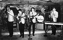 It was also at this time that they met local disc jockey Peter Huntington May who would become their manager and produce their records.[2] In 1966 they went to a studio located in a basement to cut their first single, "She's My Woman" b/w their version of "(I'm Not Your) Stepping Stone," which was released on the Falcon label.[1][2][5] Only 50 promotional copies were pressed for radio stations.[1] However, their next single cut at Dove Recording Studio in Bloomington, Minnesota featured a raucous version of "Hey Joe" b/w "Sunny Day,"[4][5] and gained significantly more exposure than their first, becoming a hit in the Minneapolis area.[1][2][3][6] The success of the single was not enough prevent Peterson and Kane from departing in 1967.[1][2] They were replaced with Jim Larkin on rhythm guitar and Dave Berget on bass.[1] Their next single, "Little Picture Playhouse" b/w "Cast Thy Burden Upon the Stone," displayed the hallucinogenic influence of psychedelia.[1][5] The band opened for Sonny and Cher (though Cher could not attend due to an illness) at the Minneapolis Auditorium.[2]