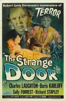 The Strange Door is a 1951 American horror film,[3] released by Universal Pictures, and starring Charles Laughton, Boris Karloff, Sally Forrest and Richard Stapley. Karloff's role is actually a supporting one but his name carried significant weight in the billing. The picture was directed by Joseph Pevney and was based on the short story "The Sire de Maletroit's Door" by Robert Louis Stevenson. Its alternative title was Robert Louis Stevenson's The Strange Door.[4]