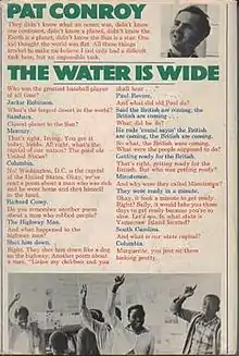The Water Is Wide is a 1972 memoir[1] by Pat Conroy and is based on his work as a teacher on Daufuskie Island, South Carolina, which is called Yamacraw Island in the book. The book sometimes is identified as nonfiction[2] and other times identified as a novel.[3]