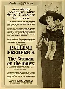 The Woman on the Index is a lost[1] 1919 American silent drama film directed by Hobart Henley and starring Pauline Frederick and her then husband playwright Willard Mack. It was Frederick's first film at Goldwyn Pictures after coming over from Paramount. It is based on a 1918 Broadway play, The Woman on the Index, that starred Julia Dean.[2][3][4]