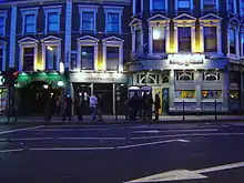 The first reference to a tavern in the area occurs in 1690. At that time the locality was entirely rural and the proprietors relied on trade passing by on the road from London to Hampstead and Highgate. The name Halfway House was accordingly also used. It is not clear whether there was one establishment in the first half of the 18th century or two, but by 1751 the Mother Red Cap and the Mother Black Cap (later renamed The Black Cap) were both in business.[1] The location was at or near the location of the cottage of a famous supposed witch, Mother Damnable.[2] In the late 18th century the Mother Red Cap was at its present location, and it had acquired a tea garden. Camden Road was later built across the grounds, and the building was reconstructed. The present building dates from 1875 and was designed by H. H. Bridgman.