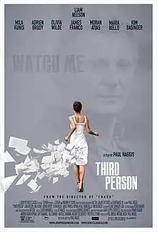 Third Person is a 2013 romantic drama film directed and written by Paul Haggis and starring an ensemble cast consisting of Liam Neeson, Mila Kunis, Adrien Brody, Olivia Wilde, James Franco, Moran Atias, Kim Basinger, and Maria Bello.[3] The film premiered at the 2013 Toronto Film Festival.[4]