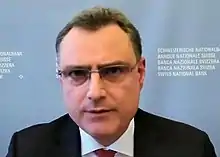 Thomas Jakob Ulrich Jordan (Swiss Standard German pronunciation: [ˈtoːmas ˈjaːkɔb ˈʊlrɪç ˈjɔrdan]; born 1963) is a Swiss economist and central banker.[1] He is the chairman of the governing board of the Swiss National Bank, chairman of the Central Bank Counterfeit Deterrence Group, a member of the board of directors of the Bank for International Settlements, and a member of the steering committee of the Financial Stability Board.[2][3][4]