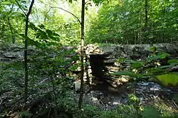 Thompson's Bridge is a historic stone bridge in rural Franklin County, Maine. Built c. 1808, it is one of a very small number of surviving stone lintel bridges in the state, a type that were once quite common. It carries a local dirt road across Josiah Creek in the Allen's Mills section of Industry, and is located near (and possibly on) the border with neighboring Somerset County.[2] The bridge was listed on the National Register of Historic Places in 1991.[1]