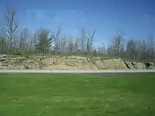 The bedrock is mostly gneiss, granite, and marble, more than a billion years old.[2] The Frontenac terrain is the youngest of the Ontario portions of the arch, dated at 1.2 billion years old.[3] These rocks were once part of a large mountain chain of the ancient supercontinent of Rodinia. There is also a meteor crater near Holleford, where the shield meets the limestone plains of southeastern Ontario.[4]