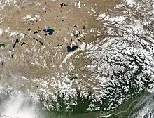 NASA satellite image of the south-eastern area of Tibetan Plateau. Brahmaputra River is in the lower right.