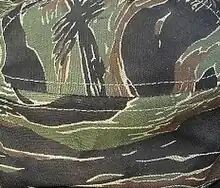 Tiger stripe is the name of a group of camouflage patterns developed for close-range use in dense jungle during jungle warfare by the South Vietnamese Armed Forces and adopted in late 1962 to early 1963 by US Special Forces during the Vietnam War. During and after the Vietnam War, the pattern was adopted by several other Asian countries. It derives its name from its resemblance to a tiger's stripes and were simply called "tigers." It features narrow stripes that look like brush-strokes of green and brown, and broader brush-strokes of black printed over a lighter shade of olive or khaki. The brush-strokes interlock rather than overlap, as in French Lizard pattern (TAP47) from which it apparently derives.