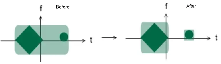 By the Nyquist–Shannon sampling theorem, we can conclude that the minimum number of sampling points without aliasing is equivalent to the area of the time–frequency distribution of a signal. (This is actually just an approximation, because the TF area of any signal is infinite.) Below is an example before and after we combine the sampling theory with the time–frequency distribution: