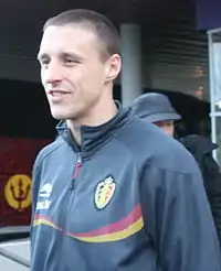 Timmy Simons (born 11 December 1976) is a Belgian professional football coach and a former defensive midfielder who is the manager of Dender EH. He was known for his tireless work ethic and penalty-taking ability, having scored 48 competitive goals through penalties, missing only 5.[1] In 2012, at age 36, Simons was both the outfield player with the most minutes and the most kilometres in the Bundesliga.[2] Simons' former clubs include Lommel, Club Brugge, PSV Eindhoven and 1. FC Nürnberg. He captained both Club Brugge and PSV Eindhoven, and won the Belgian Golden Shoe in 2002 while playing for Club Brugge.